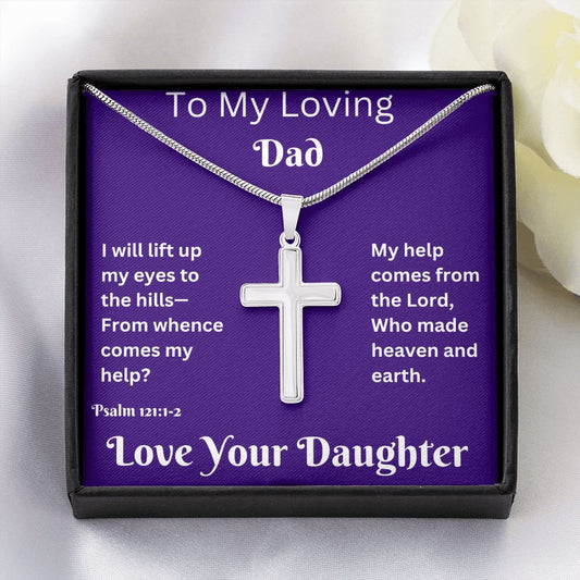 To My Loving Daughter Necklace - Psalm 121:1- My Help conmes From The Lord, Artisan cross, Cross Neckalce