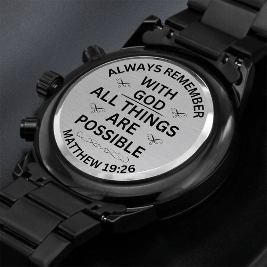 Timeless Elegance: Engraved Black Chronograph Watch for Men - A Durable and Personalized Gift