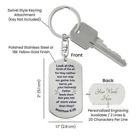 Matthew 6:26 Dog Tag Key Chain - Be inspired every time you look at your keys, A Symbol of God's Provision