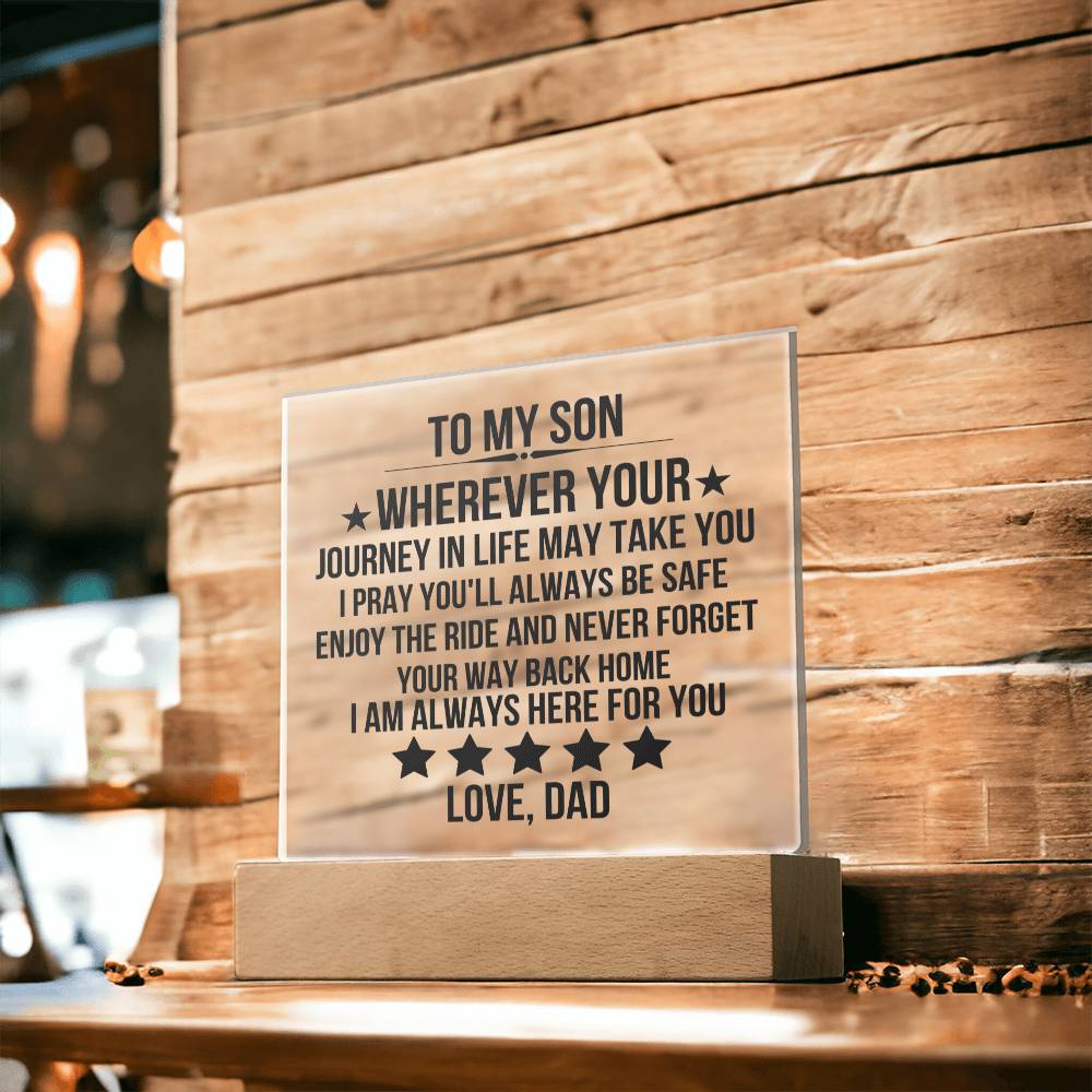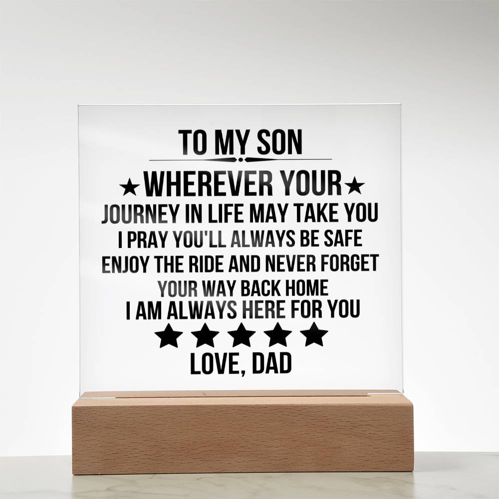 "To My Son - Wherever Your Journey In Life May Take You, I Pray You Will Always Be Safe. Enjoy The Ride And And Never Forget Your Way Back Home.